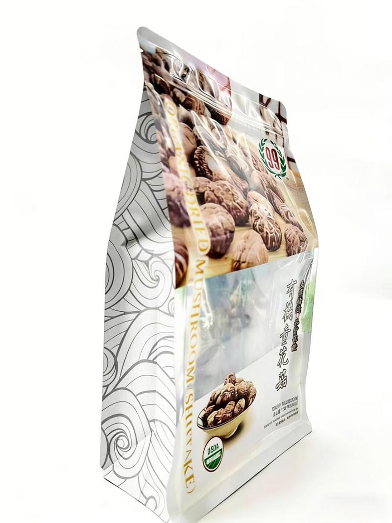 ທາງເລືອກຂອງການຫຸ້ມຫໍ່ມີຜົນກະທົບໂດຍກົງຕໍ່ການເກັບຮັກສາແລະການນໍາສະເຫນີຫມາກໄມ້ແຫ້ງ. ປະເພດຂອງການຫຸ້ມຫໍ່ຕົ້ນຕໍທີ່ມີຢູ່ໃນຕະຫຼາດປະກອບມີປະທັບຕາສາມດ້ານ, ປະທັບຕາສີ່ດ້ານ, pouches ຢືນ, ແລະຖົງປະທັບຕາແປດຂ້າງ. ໃນບັນດາສິ່ງເຫຼົ່ານີ້, ຖົງປະທັບຕາແປດດ້ານແມ່ນທາງເລືອກທີ່ມັກ. ເມື່ອປຽບທຽບກັບກະເປົ໋າປະເພດອື່ນໆ, ຖົງປະທັບຕາແປດດ້ານມີລັກສະນະປະທັບຕາແປດດ້ານ, ເຮັດໃຫ້ມັນຢືນຢູ່ກົງກັບລຸ່ມຮາບພຽງ, ເຮັດໃຫ້ມັນເຫມາະສົມສໍາລັບການສະແດງຢູ່ໃນຊັ້ນວາງຂອງຮ້ານ. ປະເພດຖົງນີ້ສະຫນອງຫ້າດ້ານສໍາລັບການສ້າງຍີ່ຫໍ້ແລະສາມາດປັບແຕ່ງດ້ວຍກາຟິກຕ່າງໆ, ເຮັດໃຫ້ມັນເຫມາະສົມກັບທັງຂາຍຍ່ອຍແລະອີຄອມເມີຊ.